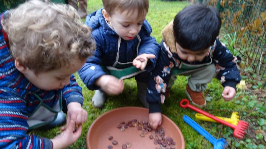 Les enfants ont profité de cette belle matinée ensoleillée, pour toucher, sentir, regarder, écouter, marcher et jouer dans notre joli bois de Fontaine.